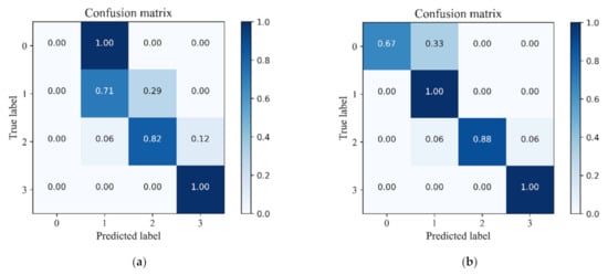 Confusion matrix of model of the test set. (a) Before data enhancement; (b) After data enhancement.