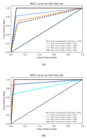 The F1-score is a measure of accuracy in a dichotomous classification problem, and is used to measure the accuracy of uneven distribution data. It takes into account both the precision (p) and recall (r) of the classification model. In multi-classification problems, there are two ways to calculate the F1-score of a model, which are Macro-F1 and Micro-F1. In the uneven distribution sample set, for an F1 value, Macro-F1 focuses on the category with the fewest samples, while Micro-F1 focuses more on the category with the most samples. They are calculated by Equations (10)–(15):