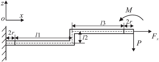 It is necessary to calculate the amplification ratio of Z-shaped flexure hinges because they have a decisive influence on the output displacement of the platform on the Z-axis. As shown in Figure 5, there are three reaction forces/moments, moment M, axial force F x and virtual force P. The matrix equation can be formulated according to the energy method, and the main equation is as follows: