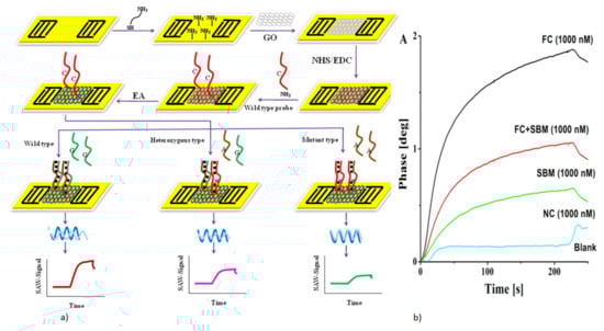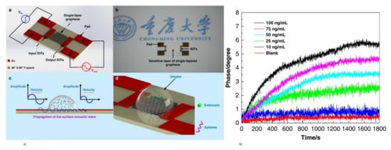307. Liu, X.; Wang, J.-Y.; Mao, X.-B.; Ning, Y.; Zhang, G.-J. Single-shot analytical assay based on graphene-oxide-modified surface acoustic wave biosensor for detection of single-nucleotide polymorphisms. Anal. Chem. 2015, 87, 9352–9359. [Google Scholar] [CrossRef]