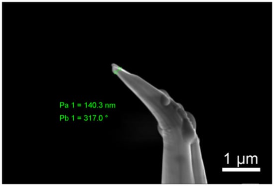 - Blumtritt, H.; Isheim, D.; Senz, S.; Seidman, D.N.; Moutanabbir, O. Preparation of nanowire specimens for laser-assisted atom probe tomography. Nanotechnology 2014, 25, 435704. [Google Scholar] [CrossRef]