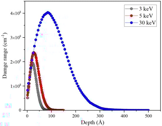 SRIM results for Ga ion induced recoil damage distribution in Al/Ni substrate under different ion energies.