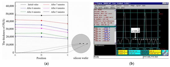 (a) PI thickness changes before and after CMP (b) Roughness test results.