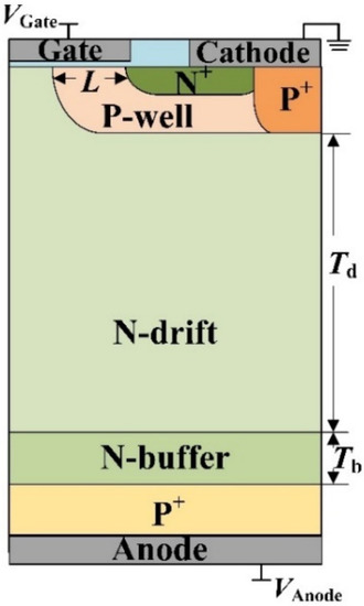 - Jiang, M.; Wang, Y. Numerical Study of a Thyristor Injection Insulated Gate Bipolar Transistor (TI-IGBT) Using P-N-P Collector. IEEE J. Electron. Devices Soc. 2019, 7, 979–983. [Google Scholar] [CrossRef]