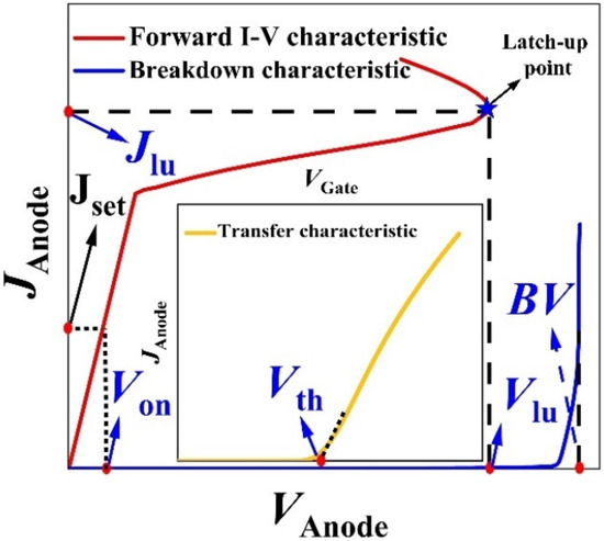 The insulated gate bipolar transistor (IGBT) is widely used in power electronics due to its superior performance [1,2]. Analysis of its static characteristic parameters has always been a key part of the design process, given that these parameters, such as on-state voltage (Von) and threshold voltage (Vth), can characterize the conduction capability of the device [3,4]. In addition, breakdown voltage (BV), static latch-up voltage (Vlu), and static latch-up current density (Jlu) are helpful when evaluating the safe operating area of the device and its reliability [5,6,7]. Conventionally, technology computer-aided design (TCAD) simulation tools are used to obtain these characteristic parameters of the device before experimental testing because of the advantage of low prediction errors [1,2,3,4]. However, this method may suffer from non-convergence when solving the semiconductor physical equations, thus decreasing the efficiency of obtaining the characteristic parameters.