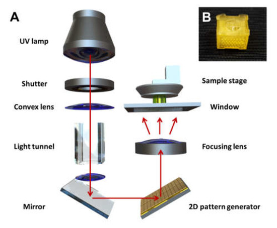 - Jung, J.W.; Kang, H.-W.; Kang, T.-Y.; Park, J.H.; Park, J.; Cho, D.-W. Projection image-generation algorithm for fabrication of a complex structure using projection-based microstereolithography. Int. J. Precis. Eng. Manuf. 2012, 13, 445–449. [Google Scholar] [CrossRef]