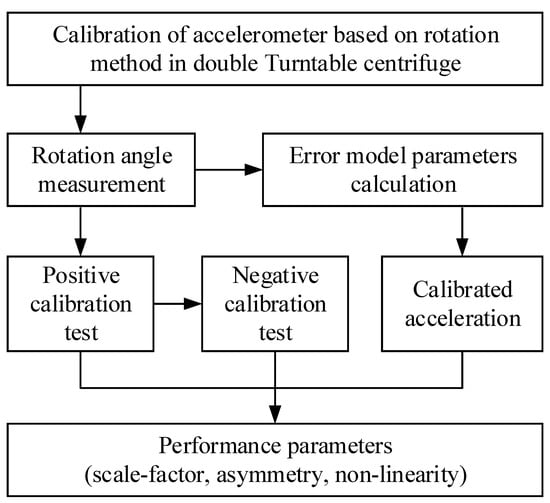 The test procedure of calibrating the accelerometer based on our proposed rotation method in the double turntable centrifuge is shown in Figure 3.