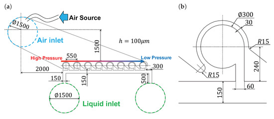 In Figure 2b, the main chamber dimensions were determined on the basis of previous studies [33]. In this study, we used the same dimensions, but there is room for debate as to whether the dimensions are suitable for using air pressure. Determining the optimal dimensions of the main chamber when air pressure is used is a future task.