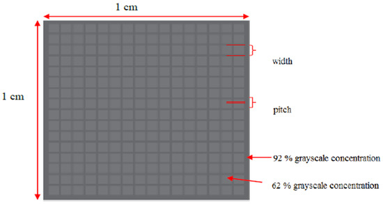 Figure 1 describes the software-designed mask design parameters. The micropillars were designed in square cross and circle cross sectional shapes with 200 m, 100 m, and 80 m width as shown in Figure 1. The pitch value 100 m and the pillar height was determined by the grayscale concentration of 60% as shown in Figure 2. The pitch and grayscale were unchanged for all types of width design. The width dimensions of the micropillars were chosen with respect to the height obtained by the 60% grayscale concentration. The relationship between pillar width and height is given by the aspect ratio values, where the aspect ratio must be between 0.2 and 2 to avoid the deformation of the PDMS micropillar [16]. Figure 1 shows the preliminary PET mask design of the micropillar array for square shape and circle shape. The microhole has a square cross section and circle cross section with width values of 80 m, 100 m, and 200 m, and the array was arranged in square and hexagonal distribution.