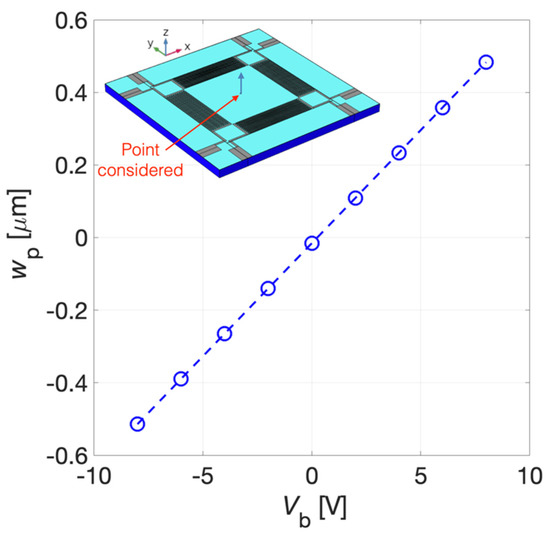 With Vb = 0 V, i.e., without electrically induced prestressed, wp is equal to −15 nm due to the gravity effect included in the simulation.