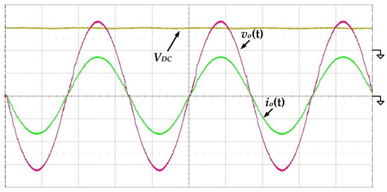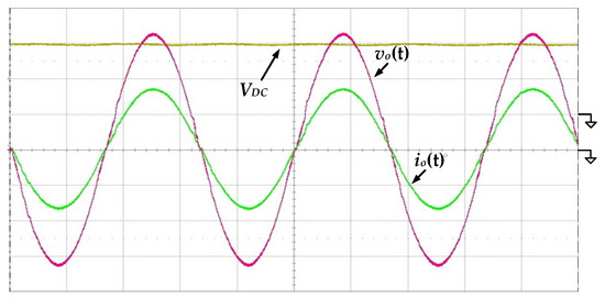 Figure 11 shows the measured waveforms of the output voltage vo(t) and the output current io(t) under the condition of 100 V input voltage and 500 W output power. It can be seen that the output voltage and current are both near-ideal sinusoidal waves with low distortion, verifying that the proposed circuit is indeed capable of converting DC input to AC output.