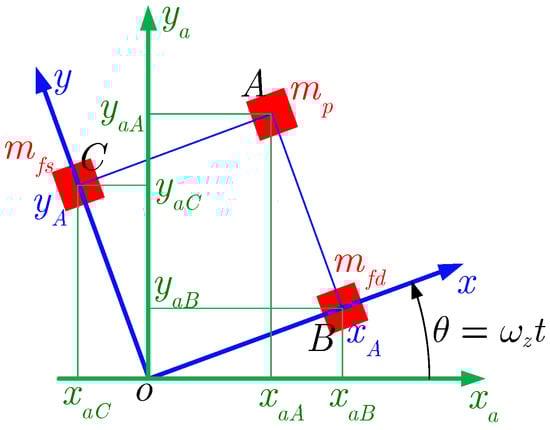 Figure 2 shows the relation between the displacement of the gyroscope coordinate system and the inertial coordinate system, where is the gyroscope coordinate system and is the inertial coordinate system. The displacement of the proof mass and the driving and sensing frames in the inertial coordinate system can be written as
