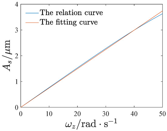 The least-squares fitting of the relation curve of the sensing amplitude and the angular velocity, .