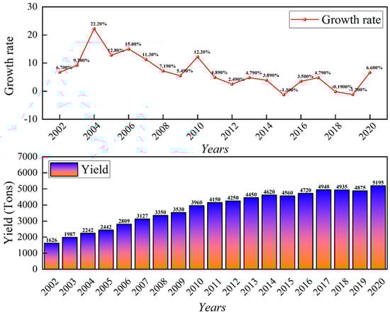 China’s total foundry production reached 51.95 million tons in 2020 [], an increase of 6.6% year-on-year, despite the impact of COVID-19. The casting output and growth rate in China in recent years and their changes are shown in Figure 8.