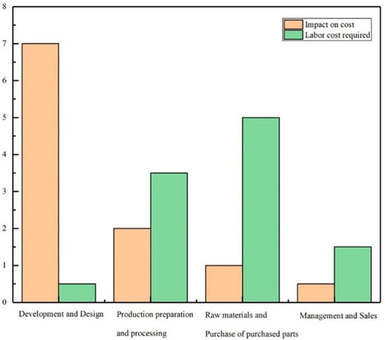 In the market, it is necessary to reduce the cost of post-processing of large quantities of castings []. The cost can be roughly divided into four parts, as shown in Figure 9: development and design, production preparation and processing, procurement of raw materials and purchased parts, and management and sales []. The labor cost is not negligible in the process of grinding. Since the Industrial Revolution, the demand of enterprises for labor has been a topic of social concern, and technology also has an important impact on people and enterprises. As a result of the adjustment in the global industrial structure, especially in the situation of high-end competition in the manufacturing industry all over the world, boosting the technology dividend instead of the demographic dividend has become one of the main ways to reduce costs.