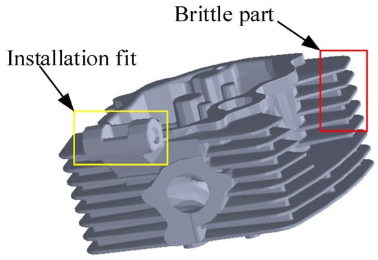 The market requires low cost and mass post-processing of casting parts, and a fast manufacturing speed can greatly shorten product processing time in batch casting production and processing []. To achieve a high volume and low cost, a rapid pace of work is required. In turn, this requires a fast response. Ensuring a fast response is one of the problems that must be currently solved to improve the working speed. Without a fast response, it is very difficult to achieve mass production of polished products or low-cost production. Parts of the surface of the casting do not require high precision and can be sacrificed to improve speed. Where the casting is assembled with other parts (Figure 10), high precision is required. At the same time, parts generally processed by casting have a thin surface, which is a characteristic of casting parts with thin brittleness. However, due to the use of brittle materials and a complex surface, thin brittleness is more serious. At present, most grinding technology is aimed at the heavier parts, so thin brittle workpieces have resulted in new requirements for grinding technology. An accurate and fast response in force control technology, and a more accurate perception and planning strategy for grinding workpieces, are required.