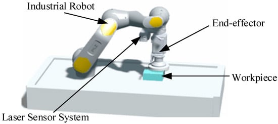 Laser sensors have also been widely used in the field of grinding. Gao, Y et al. carried out research on robot grinding technology for welding pretreatment technology of large parts [], and adopted a laser profilometer for on-site measurement, planning and processing. At AUTOMATICA 2018 in Munich, Fraunhofer IPA and PILZ, a member of the Ros Industrial Consortium, presented an on-site measure–plan–process grinding robot, as shown in Figure 13. On the basis of previous research, Ge et al. further proposed and constructed a robot welding-line grinding system based on laser sensors []. A sensing device and a self-made grinding tool were integrated at the end of the robot for the grinding operation. After rough grinding, the weld height was kept at about 0.1 mm, and the average surface roughness after fine grinding was 0.351 μm.