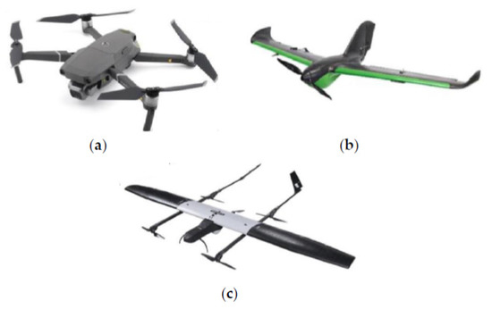 Figure 1) have been developed to perform a variety of tasks. The categories of UAVs—single-rotor, multi-rotor, fixed-wing, and hybrid UAVs—have been used in the pandemic and other industrial applications. Each UAV has advantages and disadvantages that help us choose the one that is best suited for the application as shown in
