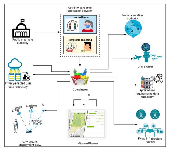 10]. This approach has proved to be useful to avoid virus transmission and ensure social distancing. Several other countries are considering UAVs for vigilance, governance, delivering food and medical supplies, thermal scanning, monitoring, and sanitization. In the US, UAVs have been deployed to deliver medical supplies such as personal medical kits for COVID-19 to distant places [