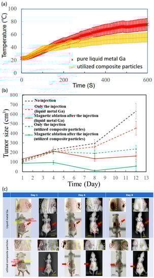 - Lee, C.W.; Chiang, M.H.; Wei, W.C.; Liao, S.H.; Liu, Y.B.; Huang, K.C.; Chen, K.L.; Kuo, W.C.; Sung, Y.C.; Chen, T.Y.; et al. Highly efficient magnetic ablation and the contrast of various imaging using biocompatible liquid-metal gallium. Biomed. Eng. Online 2022, 21, 48. [Google Scholar] [CrossRef]