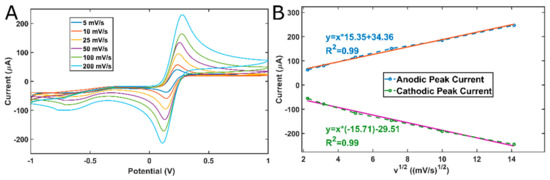 Another experiment was performed with both devices in order to calculate the electroactive surface areas (A) of the PGEs, which were calculated using the Randles–Sevcik equation [