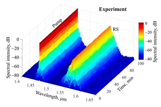 - Grudinin, A.B.; Dianov, E.M.; Korobkin, D.V.; Prokhorov, A.M.; Serkin, V.N.; Kaidarov, D.V. Stimulated-Raman-scattering excitation of 18-fs pulses in 1.6-µm region during pumping of a single-mode optical fiber by the beam from a Nd:YAG laser (λ = 1.064 µm). JETP Lett. 1987, 45, 260–263. [Google Scholar]