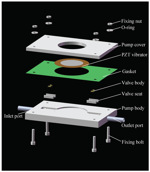 - Huang, W.Q.; Lai, L.Y.; Chen, Z.L.; Chen, X.S.; Huang, Z.; Dai, J.T.; Zhang, F.; Zhang, J.H. Research on a Piezoelectric Pump with Flexible Valves. Appl. Sci. 2021, 11, 2909. [Google Scholar] [CrossRef]
