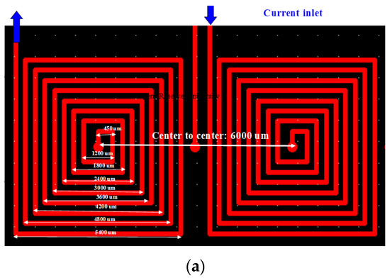 Magnetic beads not only serve as an actuated medium but are also carriers for biomolecules; for example, super-paramagnetic particles are suitable for nucleic acid binding and transfer [2]. Magnetic beads are also attractive from a practical perspective because they can be used to capture proteins or nucleic acids [23]. The extraction from crude biosamples uses various commercially available reagents and surface-coated particles to perform on-chip DNA extraction and purification [18,19,20,22]. Permanent magnets [19,20] or micro-coils [18,21,22] have been employed to transport [19,20,22], split [18,20,22], and merge droplets [19] for genetic assay. Nonetheless, the numerical simulation remains inadequate for analyzing the magnetic and thermal fields of such planar coils. If numerical simulation can be utilized to analyze the distribution of magnetic and temperature fields for the planar micro-coils, then this simulation can provide an optimal design for these micro-coils. Therefore, the time and cost of trial-and-error methods can be significantly reduced.