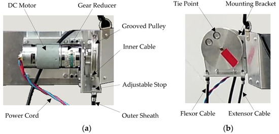 - Kuan, J.Y.; Pasch, K.A.; Herr, H.M. A high-performance cable-drive module for the development of wearable devices. IEEE/ASME Trans. Mechatron. 2018, 23, 1238–1248. [Google Scholar] [CrossRef]