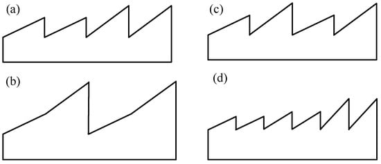 Figure 2. Convex dual-blaze grating. (a) Dual-panel blazed structure [28]. (b) Dual-angle blazed structure [28]. (c) Dual-blaze angle structure [31]. (d) Schematic diagram of multi-blazed grating groove structure [32].