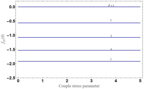 Variation of with respect to the stretching/shrinking surface for different values of couple stress .
