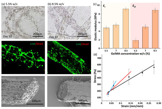 - Costantini, M.; Testa, S.; Fornetti, E.; Barbetta, A.; Trombetta, M.; Cannata, S.M.; Gargioli, C.; Rainer, A. Engineering Muscle networks in 3D gelatin Methacryloyl hydrogels: Influence of Mechanical stiffness and geometrical confinement. Front. Bioeng. Biotechnol. 2017, 5, 22. [Google Scholar] [CrossRef] [PubMed]