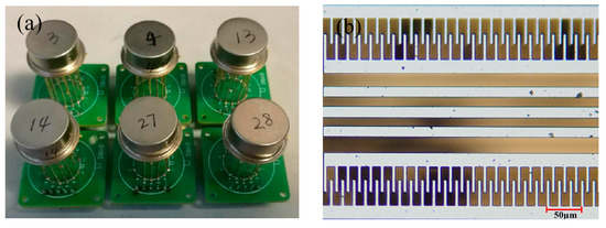As shown in Figure 1a, three types of device-level packaged MEMS gyroscopes were customized with different vacuum degrees.