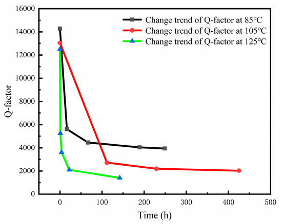 Changes of Q-factor of different samples under high-temperature baking at 85 °C.