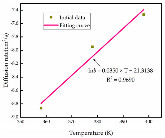 Taking T as the abscissa and Inb as the ordinate, the linear fitting curve is shown in Figure 5, and the fitting equation is .