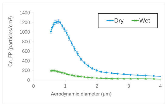 Particle size distribution of FP number concentration with different lubrication modes (Chamfered tool, Grit 150, = 2500 rpm, = 1000 mm/min).