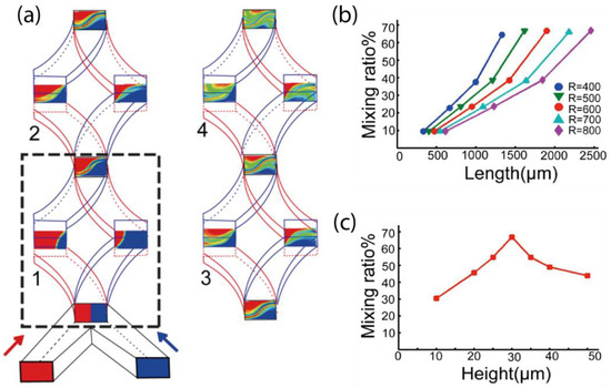 - Lee, S.W.; Lee, S.S. Rotation effect in split and recombination micromixing. Sens. Actuators B Chem. 2008, 129, 364–371. [Google Scholar] [CrossRef]