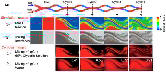 - Jeon, W.; Shin, C.B. Design and simulation of passive mixing in microfluidic systems with geometric variations. Chem. Eng. J. 2009, 152, 575–582. [Google Scholar] [CrossRef]
