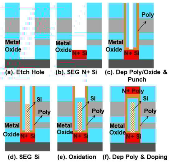 - Cho, Y.; Hwang, Y.; Kim, H.; Lee, E.; Hong, S.; Chung, H.; Kim, D.; Kim, J.; Oh, Y.; Hong, H.; et al. Novel Deep Trench Buried-Body-Contact (DBBC) of 4F2 cell for sub 30nm DRAM technology. In Proceedings of the European Solid-State Device Research Conference (ESSDERC), Bordeaux, France, 17–21 September 2012; pp. 193–196. [Google Scholar] [CrossRef]