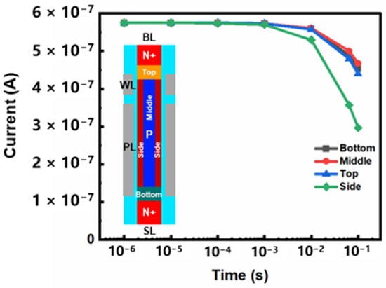 - Sung, C.-L.; Fan, S.; Lue, H.; Chen, W.; Du, P.; Yeh, T.; Wang, K.C.; Lu, C. First Experimental Study of Floating-Body Cell Transient Reliability Characteristics of Both N-and P-Channel Vertical Gate-All-Around Devices with Split-Gate Structures. In Proceedings of the IEEE International Reliability Physics Symposium (IRPS), Dallas, TX, USA, 27–31 March 2021; pp. 1541–7026. [Google Scholar] [CrossRef]