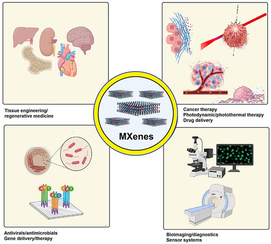 - Iravani, S.; Varma, R.S. MXenes in cancer nanotheranostics. Nanomaterials 2022, 12, 3360. [Google Scholar] [CrossRef]