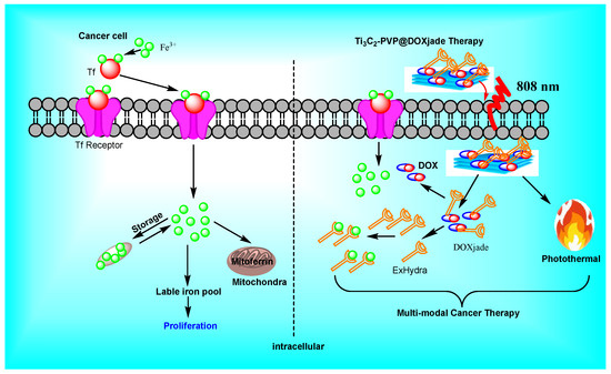 - Liu, A.; Liu, Y.; Liu, G.; Zhang, A.; Cheng, Y.; Li, Y.; Zhang, L.; Wang, L.; Zhou, H.; Liu, J.; et al. Engineering of surface modified Ti3C2Tx MXene based dually controlled drug release system for synergistic multitherapies of cancer. Biochem. Eng. J. 2022, 448, 137691. [Google Scholar] [CrossRef]