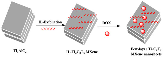 - Lu, B.; Hu, S.; Wu, D.; Wu, C.; Zhu, Z.; Hu, L.; Zhang, J. Ionic liquid exfoliated Ti3C2Tx MXene nanosheets for photoacoustic imaging and synergistic photothermal/chemotherapy of cancer. J. Mater. Chem. B 2022, 10, 1226–1235. [Google Scholar] [CrossRef] [PubMed]