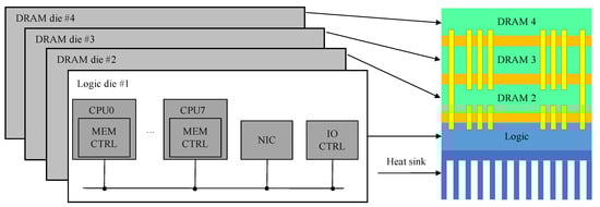 - Kgil, T.; D’Souza, S.; Saidi, A.; Binkert, N.; Dreslinski, R.; Mudge, T.; Reinhardt, S.; Flautner, K. PicoServer: Using 3D stacking technology to enable a compact energy efficient chip multiprocessor. In Proceedings of the 12th International Conference on Architectural Support for Programming Languages and Operating Systems, San Jose, CA, USA, 21–25 October 2006; pp. 117–128. [Google Scholar]