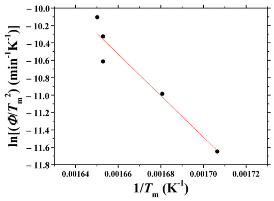 Plot of ln (Φ/Tm2) versus 1/Tm, obtained from the data of T versus t and dT/dt versus t curves.