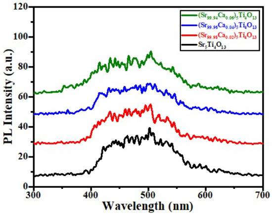 - Longo, V.M.; De Figueiredo, A.T.; De Lázaro, S.; Gurgel, M.F.; Costa MG, S.; Paiva-Santos, C.O.; Franco, R.W.A. Structural conditions that leads to photoluminescence emission in SrTiO3: An experimental and theoretical approach. J. Appl. Phys. 2008, 104, 023515. [Google Scholar] [CrossRef]