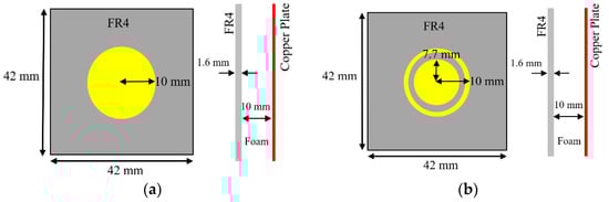10×10-unit cells array (a) circular type patch (b) circular type patch with a ring.