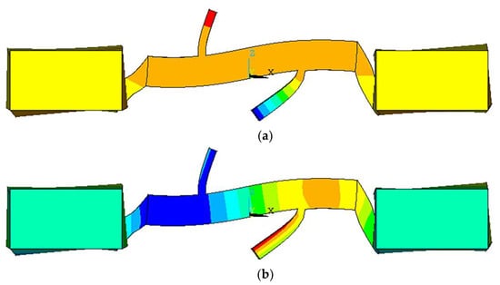 Modal analysis: (a) X-directional vibration mode; (b) Z-directional vibration mode.