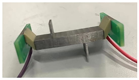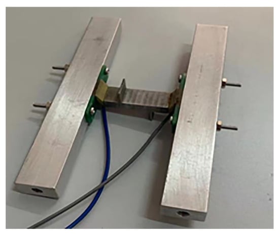 The parameters in Table 1 were chosen to construct the prototype. The linear ultrasonic motor prototype is shown in Figure 9. The stator body of the motor was made entirely of steel, and both the ends and surfaces of the stator were polished smoothly to ensure that the oblique piezoelectric ceramics could be well-arranged at both ends of the stator elastomer according to the above-mentioned scheme, stimulating the required coupling mode. To power the ceramics and produce the end eccentric constraint with the oblique piezoelectric ceramics, light PCB material plates were stacked at both ends of the oblique piezoelectric ceramics.