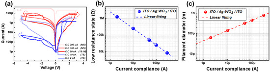 Seo, J.; Han, G.; Kim, H.; Lee, D. Ag-Ion-Based Transparent Threshold Switching Selector with Filament-Size-Dependent Rectifying Behavior. Micromachines 2022, 13, 1874. https://doi.org/10.3390/mi13111874